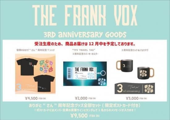 皆様のおかげ "さん" 周年記念Tシャツ&3周年記念ウッドぬくもりマグ&"TFV TRAVEL TAG"3周年記念ラバーキーホルダーのセット販売です!